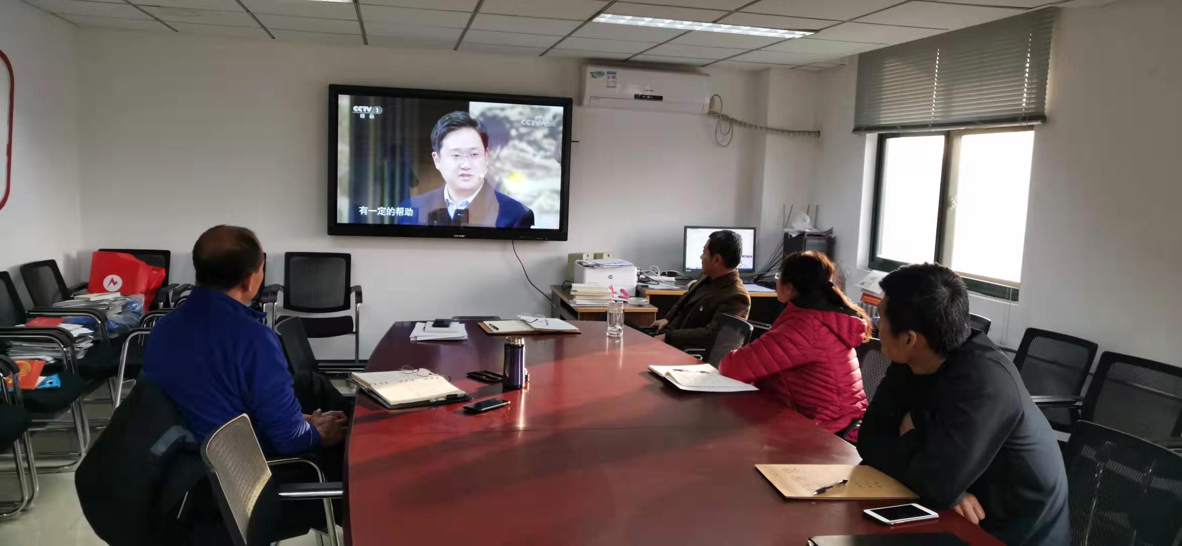随后班子成员集体观看了央视一套播出的《故事里的中国》栏目中北京林业大学派驻科右前旗远新村的驻村第一书记张骅的采访片段。观看视频过后,大家表示看到身边的同事默默奋斗在国家扶贫工作一线,并且取得了如此大的成就,带领乡亲们摆脱贫困,发展生产,走向富裕,也使自己内心深受鼓舞和教育。
