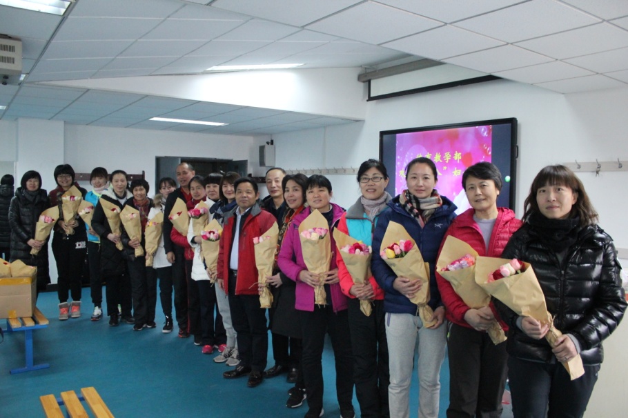 3月7日上午11点,体育教学部在看台308教室庆祝“三八节”,骆校长、石主席为女教工献花,送上温馨祝福,活动在轻松愉快的气氛中进行。随后大家为1-3月份生日的老师集体庆祝,骆校长、石主席同老师们唱生日歌、分蛋糕,切实让体育教师感受到学校大家庭的温暖。