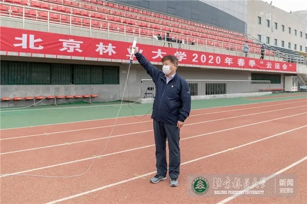 王洪元宣布北京林业大学2020年春季“云运会”开幕,并打响第一项比赛的发令枪。