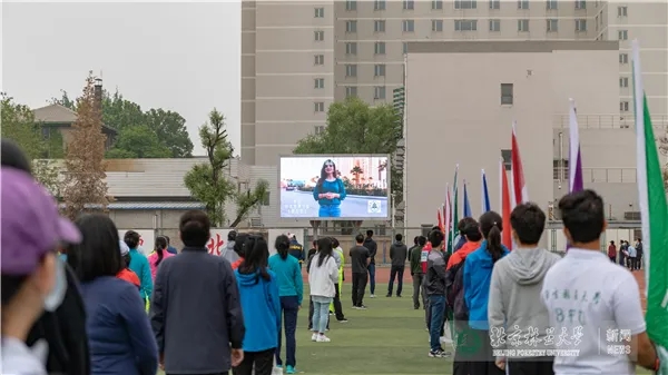 开幕式现场,师生们一同观看了留学生们的祝福视频。病毒没有国界,疫情不分种族。这段时间,新冠疫情在全球多点爆发。我校有大量留学生分布在世界各地,学校始终关心、关注着他们的生命安全、身体健康与学业情况。本次云运会,他们也通过网络积极在线参与。