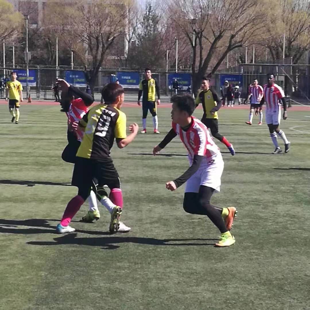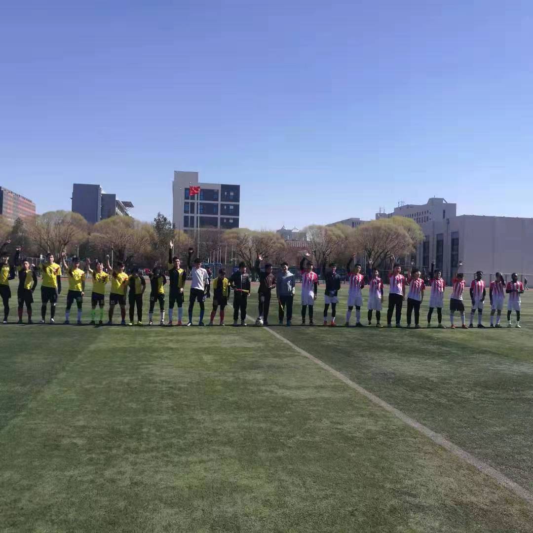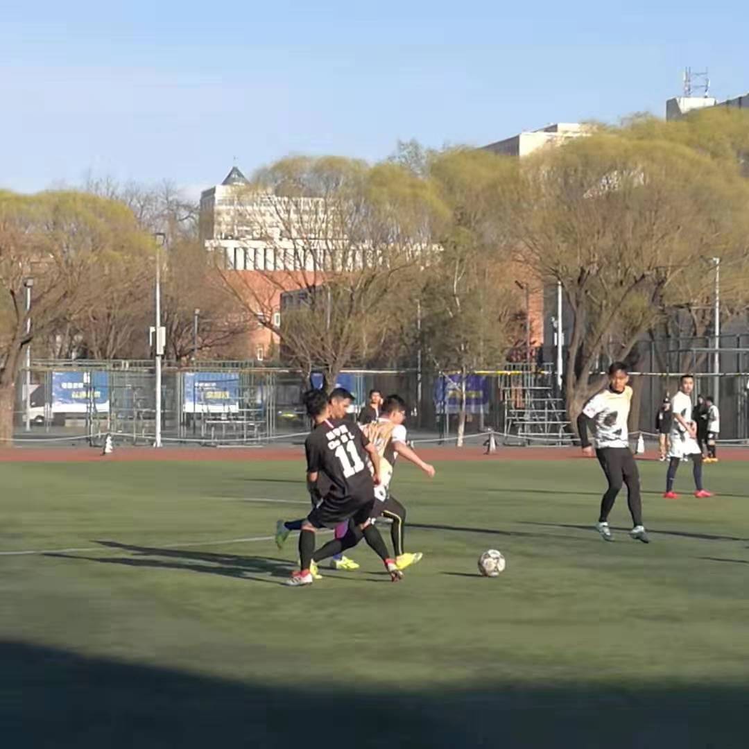 比赛开始了,双方队员都士气饱满,热情高涨,矫健地奔跑着。在双方队员娴熟的各种踢球技术之下,比赛显得尤为激烈,上半场中双方各有一个进球,这使得激烈的赛况一直持续到下半场。在下半场,比赛逐渐进入到白热化阶段,经管学院几次打门,但是都没有踢进球。这种胶着的赛况一直持续到结束,最终这场比赛以1比1的成绩打平。