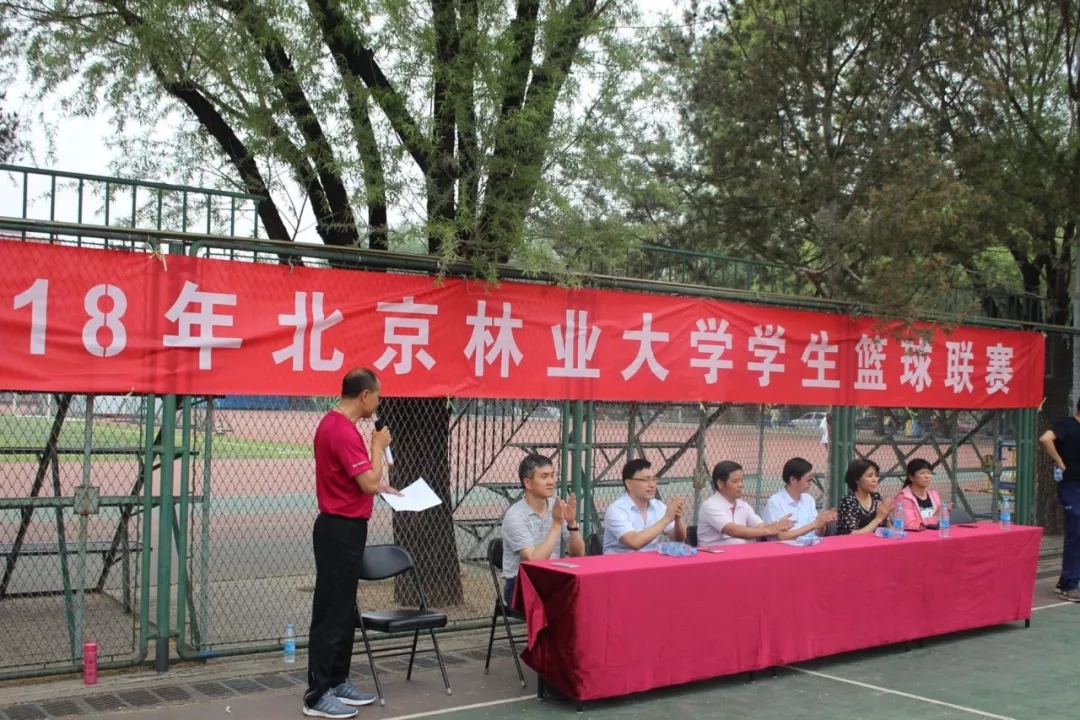 5月15日中午校园篮球场上,2018年北京林业大学学生篮球联赛拉开帷幕,副校长骆有庆,教务处处长黄国华,学生工作部部长刘广超,体育教学部党总支书记苏静,体育教学部主任陈东以及各学院领导出席了开幕仪式。