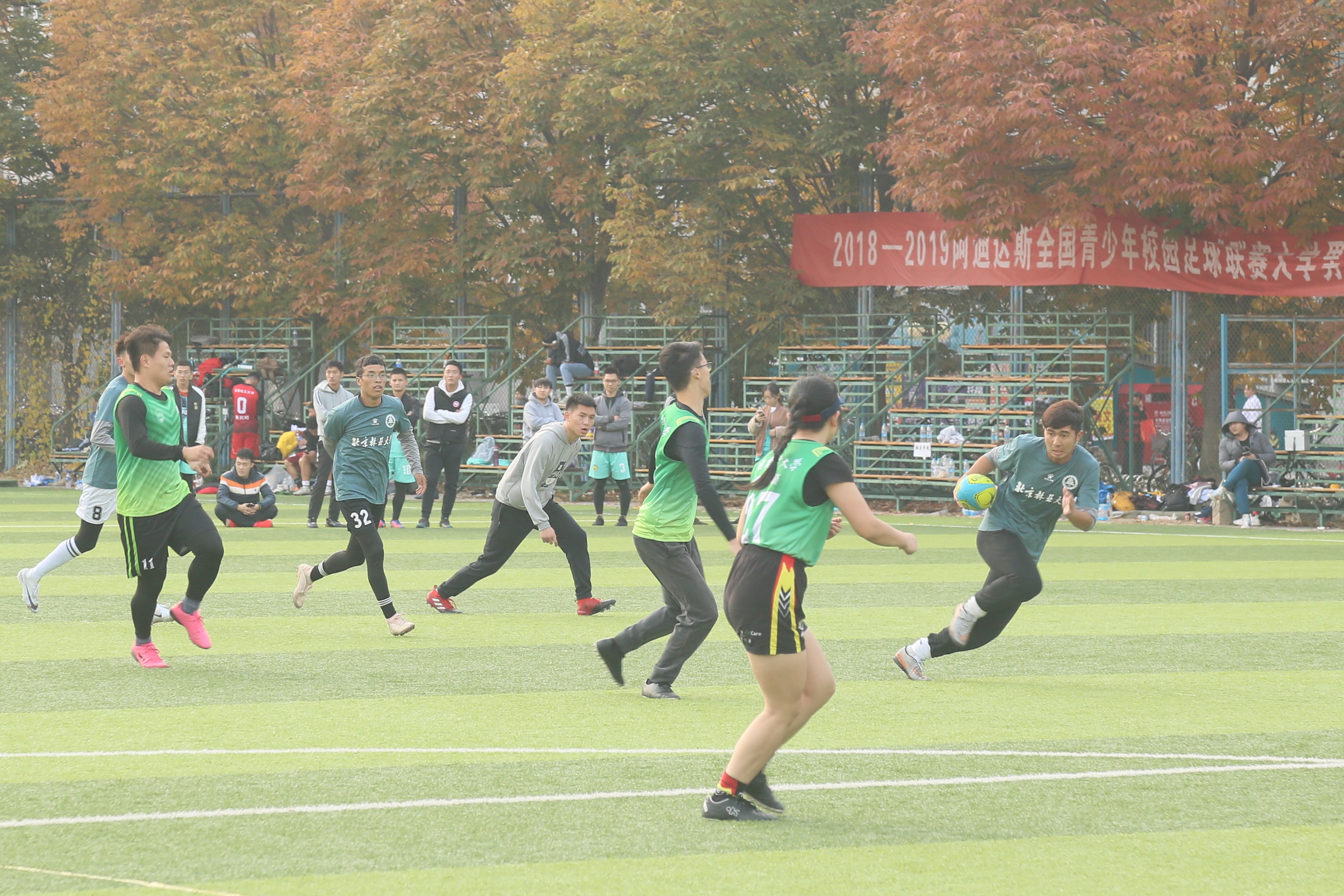 中午休息时间,晚上有考试的同学还在认真复习“不忘初心 牢记使命”主题教育讲话知识点,这一支成立了将近八年的队伍,从第一次参加比赛时仅得到第六名的成绩,到如今成为对手们不容小觑的实力选手,不断的吸纳新的队员,学习新的战术,他们也在坚守他们的初心,承担他们的使命。秋日的落叶纷飞,冷风习习,这支队伍却永远充满欢乐。