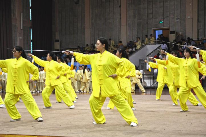 我校吴马、闪明、杨华三位老师带领共计190余名学生参加了太极剑、太极功夫扇等比赛项目,同学们团结协助,充分发扬团队精神,用良好的精神风貌和出色的比赛水平征服了评委和其他高校,最终获得:团体总分第一名,太极功夫扇第一名,太极剑术第一名的好成绩。经受过磨炼与汗水,同学、教练得到了裁判们和嘉宾们的一致认可与好评,这些认可不仅仅是献给这段日子的努力,也同样是对我们传统武术文化传承的认可,一届届武术比赛,一代代武术传承,在这个过程中,我们的身心得到了锻炼,我们的传统文化得到了传承。