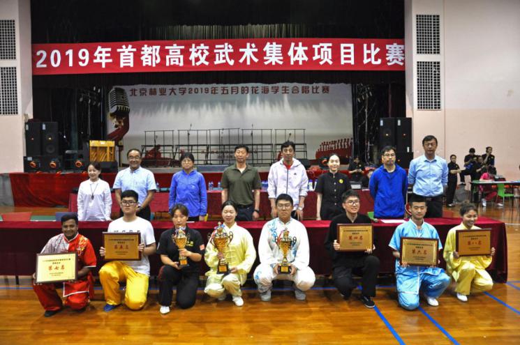 最后,比赛举行隆重的闭幕仪式。北京市大学生体育协会竞赛部副主任李永明、白永正、大体协武术分会主席邢登江、秘书长翟京云、北京林业大学体育教学部副主任满昌慧、总裁判长蒙华、仲裁主任彭芳分别为获得前八名学校颁奖。在参赛队伍、裁判和现场的工作人员的协同努力下,2019年首都高校武术集体项目比赛圆满结束。大会举行了隆重的颁奖仪式,最后由大体协武术分会主席邢登江教授宣布本次大赛闭幕!